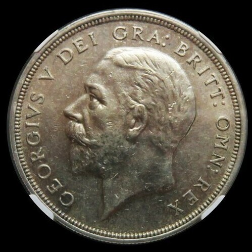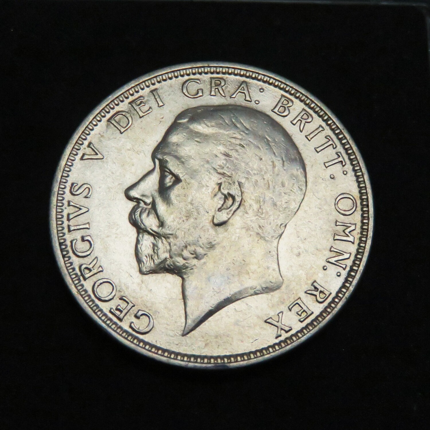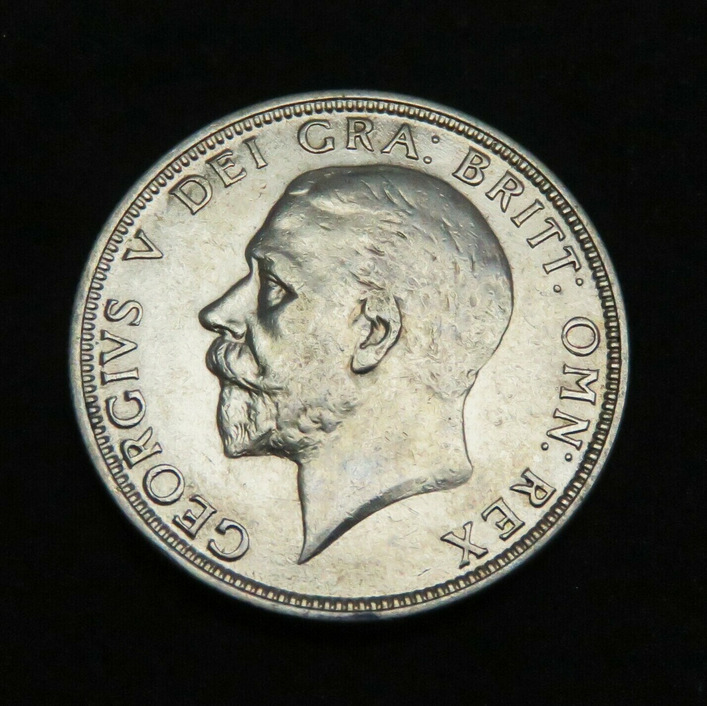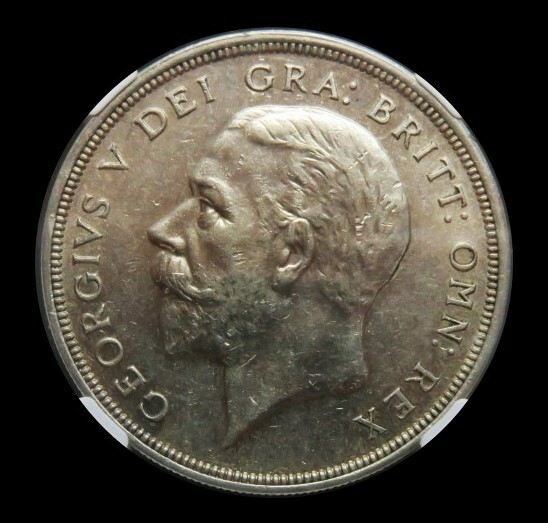 Аверс: профиль короля Георга V без короны. Надпись на латыни: GEORGIVS V DEI GRA:BRITT:OMN:REX = George the Fifth by the Grace of God King of all the Britains = Георг Пятый милостью Божьей король всей Британии.