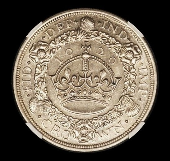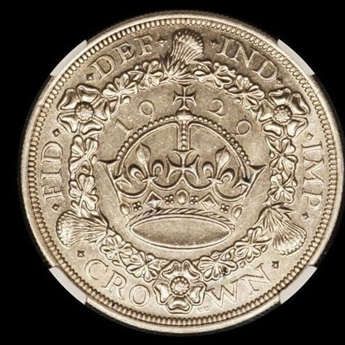 Реверс: коронованный лев, стоящий на короне. Надпись вверху FID·DEF IND·IMP = Defender of the Faith Emperor of India = Защитник веры, император Индии. Надпись снизу: номинал и год = ONE·SHILLING·1929